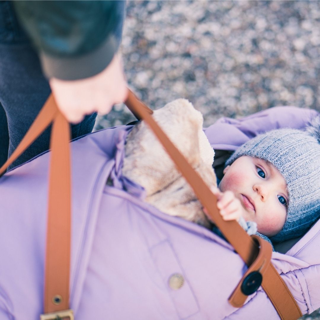 Lommer til f.eks. sut, blekit eller personlige ejendele. 5 selehuller til 5-punktssele, der er delbar. Der medfølger ét lagen.